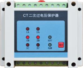组合式电流互感器二次过电压保护器主要用各种CT二次侧的异常过电压保护。保护器固接于CT二次绕组两端,正常运行时泄漏电流极小,呈高阻状态;当CT二次回路开路或一次绕组出现异常过流时,二次绕组产生的电压远远高于正常运行电压,此时保护器迅速动作而短路,面板上显示故障的部位,并有无源接点信号输出。故障排除后,按手动复位按钮,电路恢复原状态后又重新投入正常运行工作。